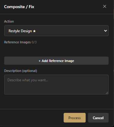 - AI features (Render by reference, object editing, object addition…) utilizing an attached image reference mechanism.